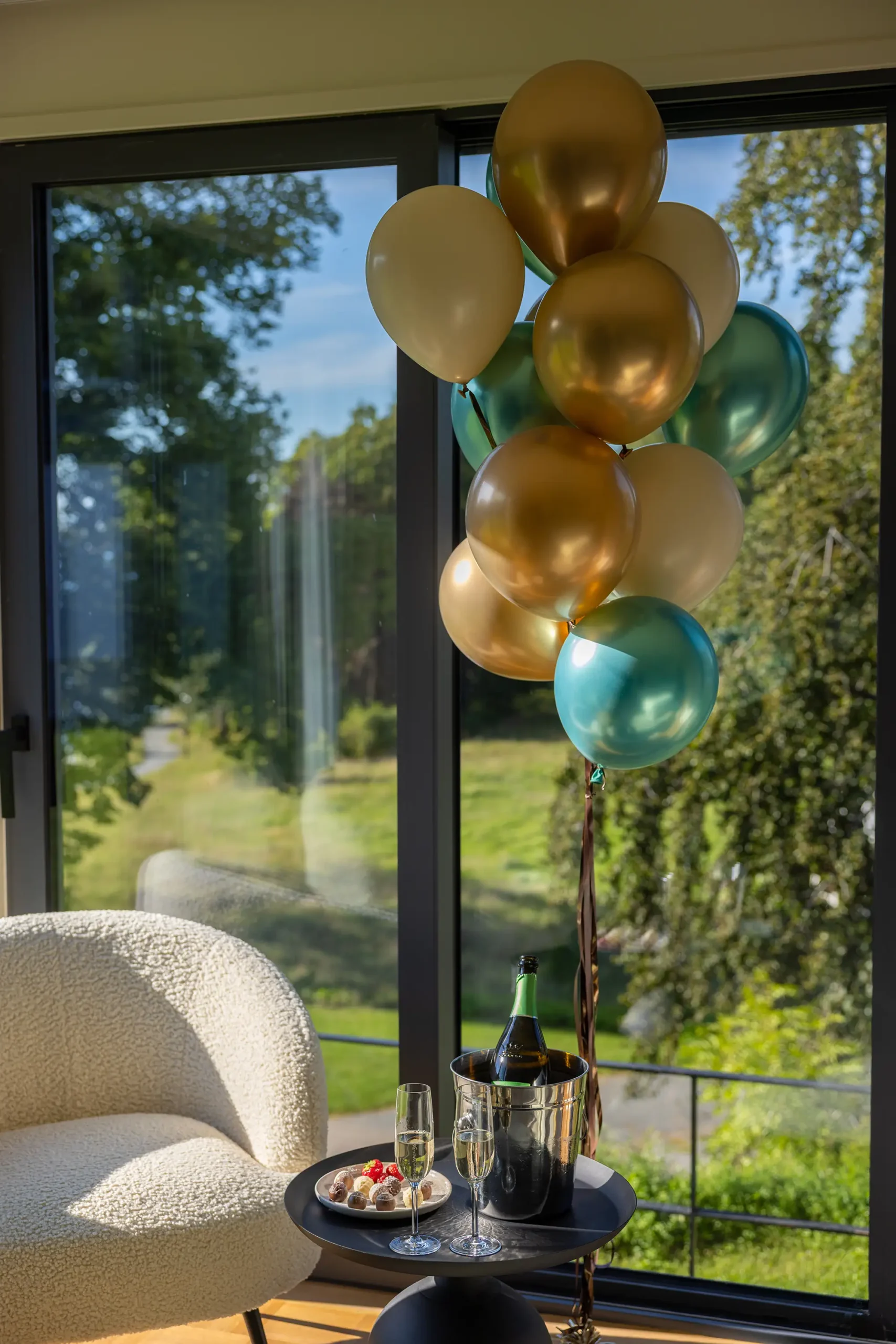 Vårt Celebration-paket är laddat med glädje, bubbel och överraskningar – perfekt när det är dags att maxa mys, skratt och magi. Ni checkar in och får bo i ett av våra härliga rum där festen redan väntar. Rummet är pyntat med svävande heliumballonger och en personlig hälsning som gör er dag extra speciell.